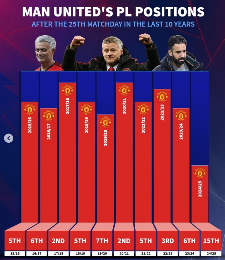 除特別注明外,本站所有內(nèi)容均為九球直播整理排版,轉(zhuǎn)載請注明出處:近10年曼聯(lián)英超25輪后排名:此前九年最差第7,本賽季第15