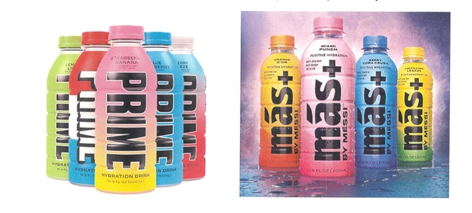 據(jù)悉,梅西的品牌Mas+在去年10月率先對PRIME提起訴訟,指控其存在“反競爭行為”,并試圖迫使Mas+更改包裝。PRIME隨后在一個月后反訴,指控梅西的品牌抄襲其商標(biāo)設(shè)計(jì)。