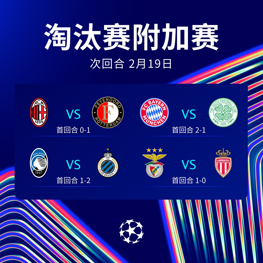 2月19日凌晨,歐冠淘汰賽附加賽第二回合戰(zhàn)火重燃,屆時(shí)將決出四支晉級(jí)16強(qiáng)的球隊(duì)。首回合取勝的拜仁劍指歐冠16強(qiáng),AC米蘭則要全力一搏,力爭(zhēng)在主場(chǎng)逆轉(zhuǎn)費(fèi)耶諾德。此外亞特蘭大、本菲卡、摩納哥等強(qiáng)隊(duì)也將出戰(zhàn)。