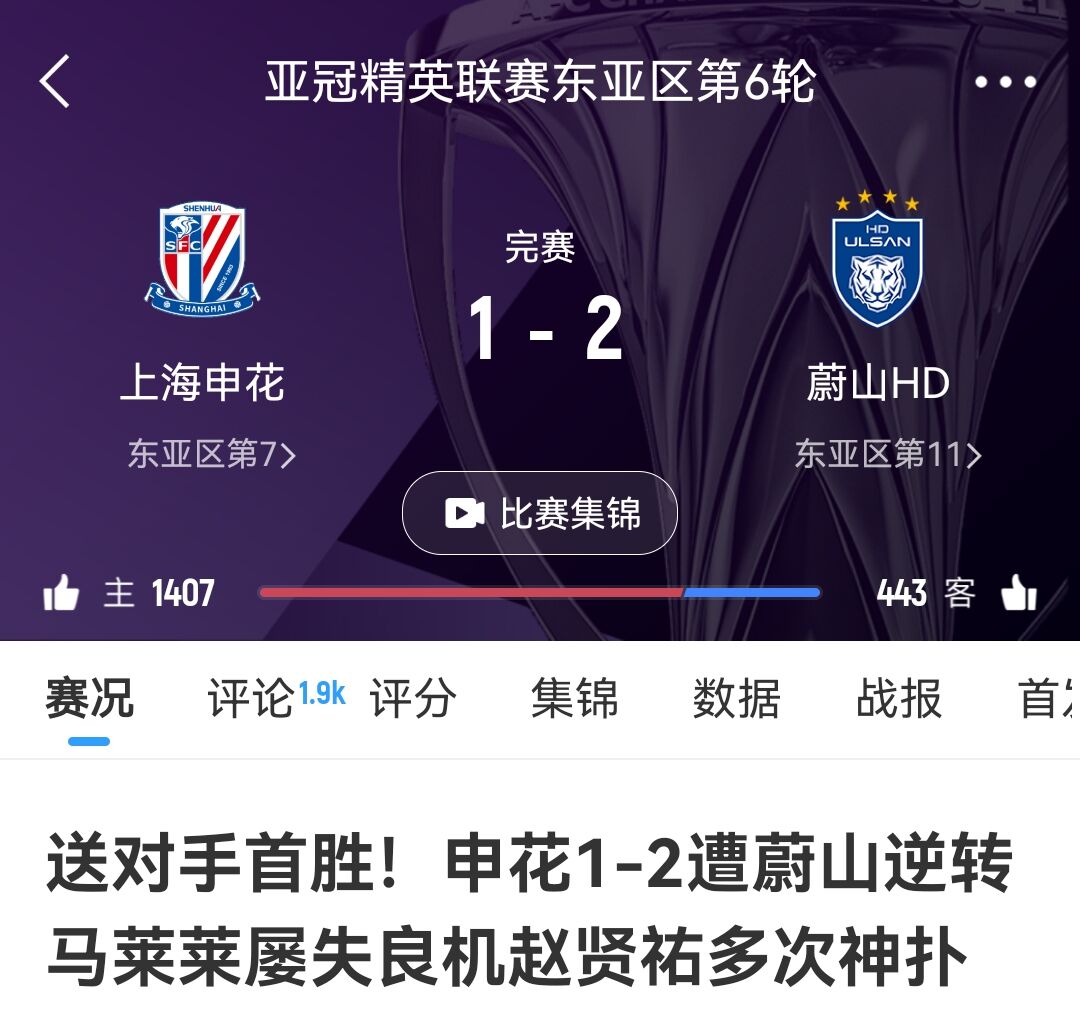 而在對陣倒數(shù)第二蔚山HD時,申花則是主場不敵對手,送給對手本屆亞冠的首勝,也是首個積分↓
