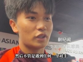 2月18日訊 U20亞洲杯小組賽最后一場,國青1-2不敵澳大利亞,不過國青已經(jīng)提前小組出線。本場打入一球的蒯紀聞賽后接受采訪,談到本次比賽目標。