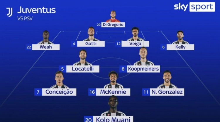 意大利天空體育預(yù)測(cè)了尤文本場(chǎng)比賽的首發(fā)陣容,穆阿尼、孔塞桑、庫普梅納斯、維加、凱利在列。