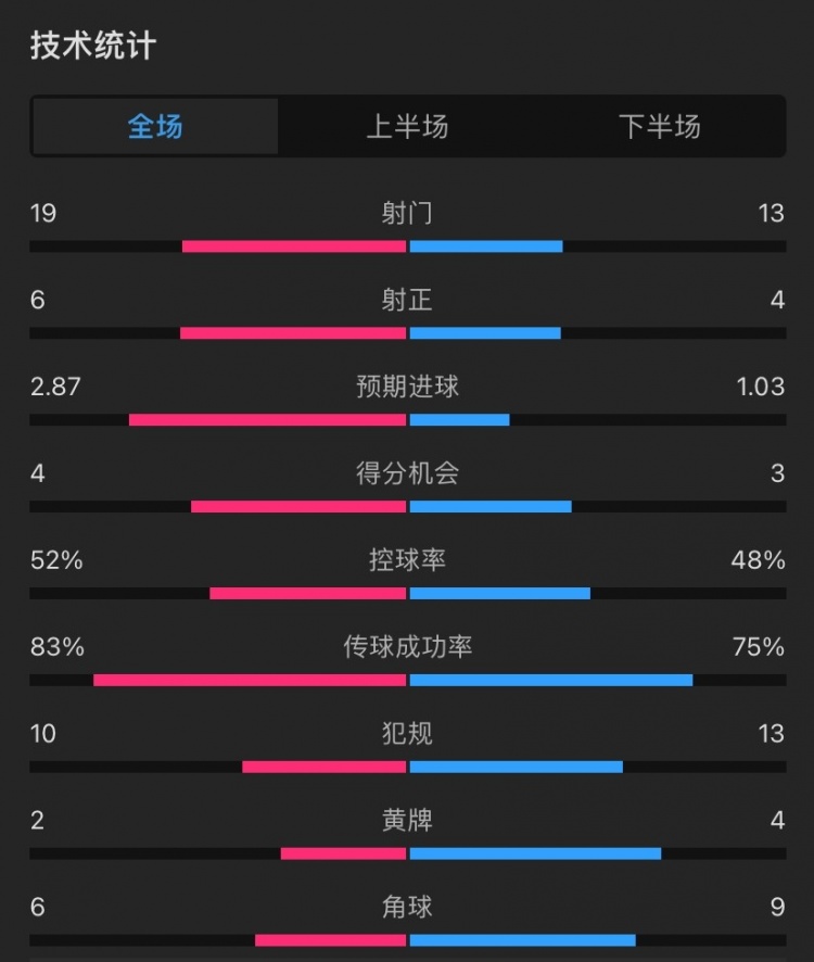 除特別注明外,本站所有內(nèi)容均為九球直播整理排版,轉(zhuǎn)載請注明出處:利物浦2-2曼聯(lián)全場:射門19-13,控球率55開,預期進球2.87-1.03