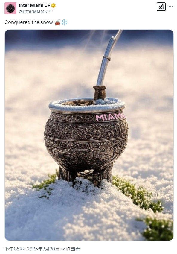 發(fā)布時間:2025年02月20日 12:50點擊:欄目:足球新聞 除特別注明外,本站所有內(nèi)容均為九球直播整理排版,轉(zhuǎn)載請注明出處:37歲梅西征服嚴寒!邁阿密官推曬結(jié)冰的馬黛茶:征服冰雪?? 本文標簽: 足球 梅西 邁阿密國際