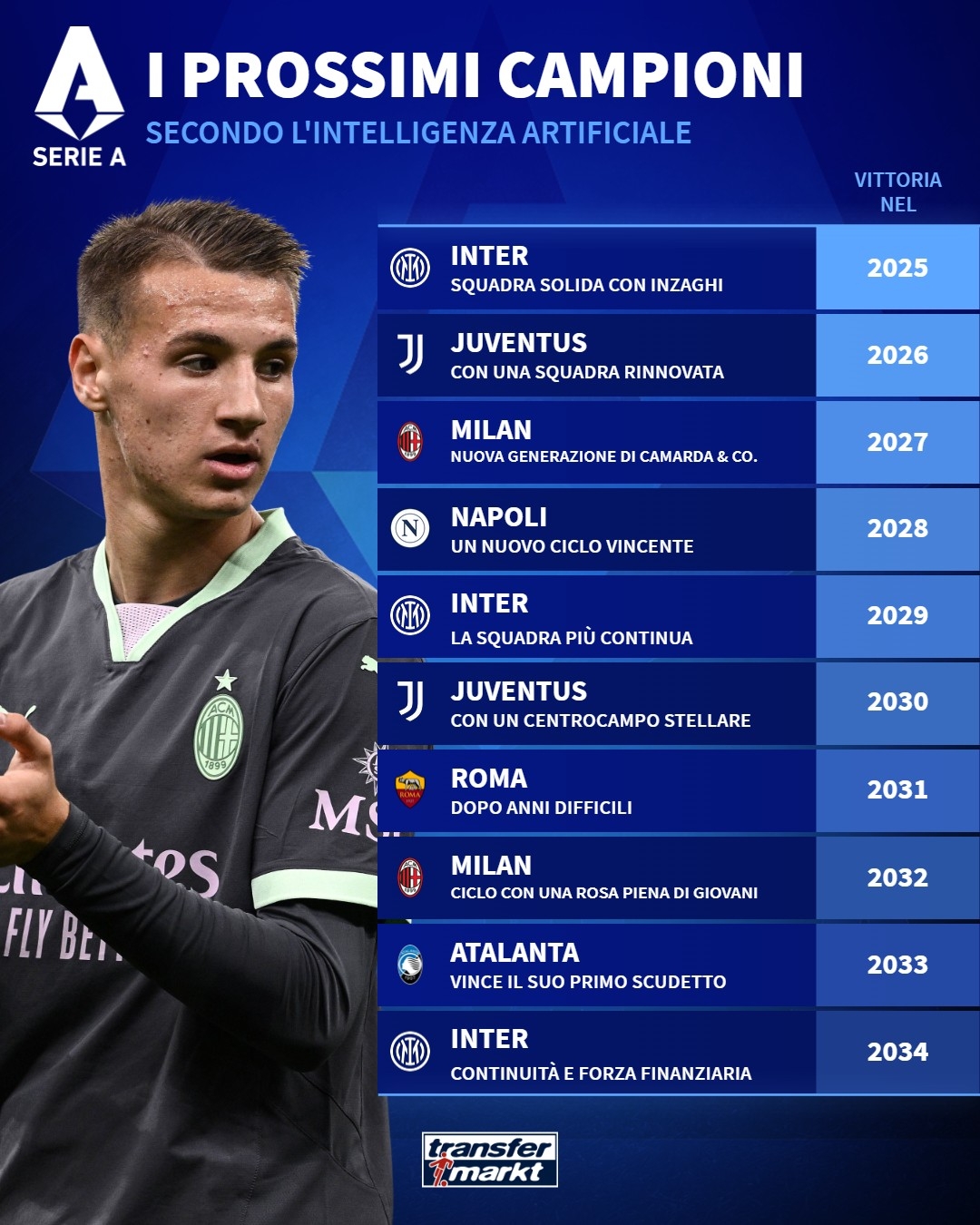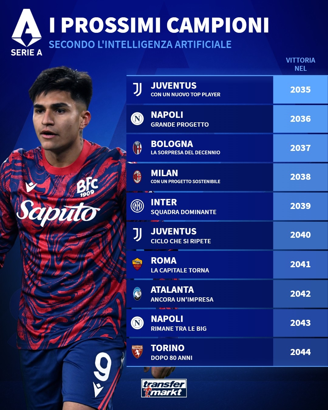 發(fā)布時間:2025年02月20日 12:50點擊:欄目:足球新聞 ChatGPT預(yù)測未來20年意甲冠軍:國米、尤文:4冠米蘭、那不勒斯:3冠羅馬、亞特蘭大:2冠博洛尼亞、都靈:1冠 除特別注明外,本站所有內(nèi)容均為九球直播整理排版,轉(zhuǎn)載請注明出處:ChatGPT預(yù)測未來20年意甲:國米尤文4冠 米蘭3冠 博洛尼亞都靈1冠 本文標簽: 足球 意甲 AC米蘭 亞特蘭大 國際米蘭 都靈 尤文圖斯 羅馬 那不勒斯 博洛尼亞