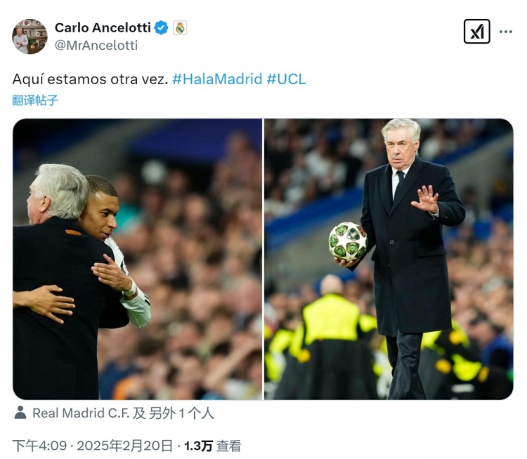 發(fā)布時間:2025年02月20日 16:50點(diǎn)擊:欄目:足球新聞 2月20日訊 歐冠淘汰賽附加賽次回合比賽,姆巴佩上演帽子戲法,幫助皇馬主場3-1擊敗曼城,兩回合總比分6-3晉級16強(qiáng)。皇馬主帥安切洛蒂更新社媒動態(tài),曬出與姆巴佩擁抱的照片,配文:“我們又來了,Hala Madrid!”歐冠16強(qiáng)抽簽將在北京時間明天19點(diǎn)進(jìn)行,皇馬的對手將是馬競或勒沃庫森。 除特別注明外,本站所有內(nèi)容均為九球直播整理排版,轉(zhuǎn)載請注明出處:晉級16強(qiáng)!安切洛蒂社媒曬與姆巴佩擁抱照片:我們又來了 本文標(biāo)簽: 足球 西甲 皇家馬德里 歐冠 安切洛蒂