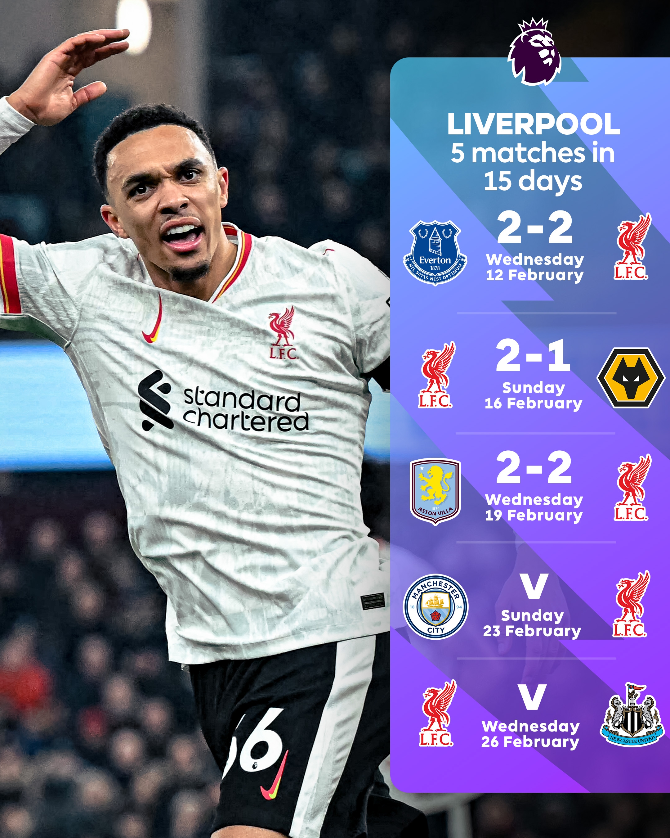 發(fā)布時間:2025年02月20日 17:50點擊:欄目:足球新聞 除特別注明外,本站所有內(nèi)容均為九球直播整理排版,轉(zhuǎn)載請注明出處:關(guān)關(guān)難過!英超曬利物浦賽程:15天5賽&已1勝2平 下周戰(zhàn)曼城紐卡 本文標(biāo)簽: 足球 英超 利物浦
