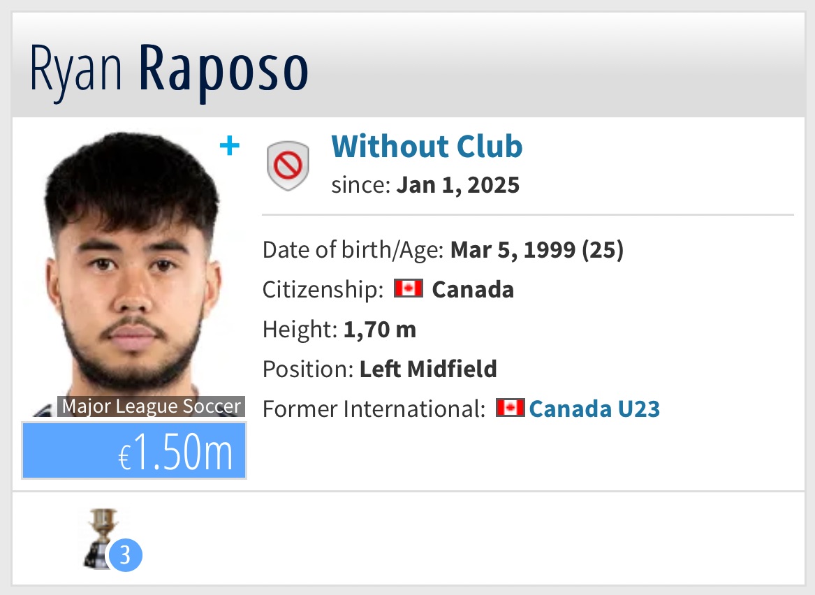 伍小海此前在溫哥華白浪效力五年,現(xiàn)年25歲的他德轉(zhuǎn)身價為150萬歐元。
