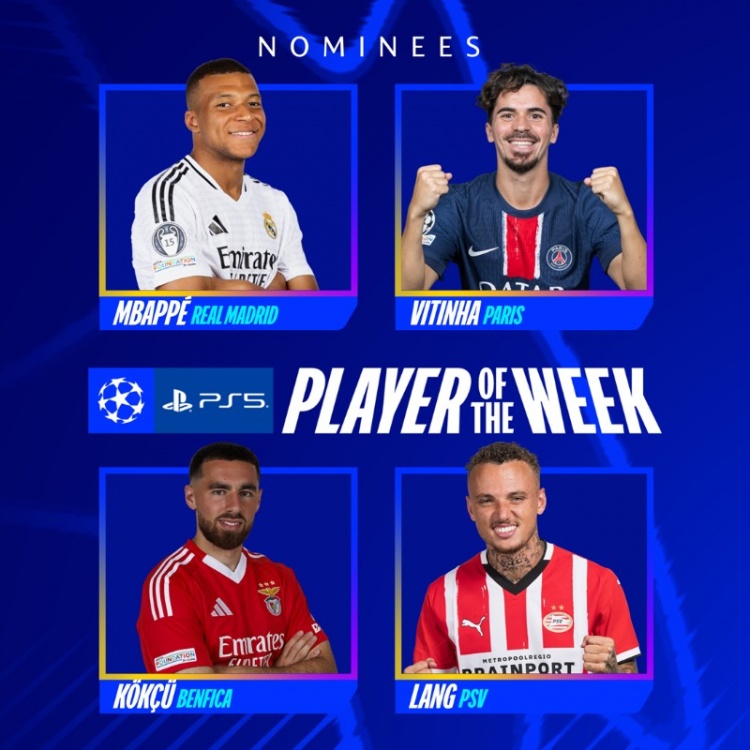 2月20日訊 歐冠淘汰賽階段附加賽次回合比賽已經(jīng)全部結(jié)束,歐冠官方公布了本周最佳球員的候選名單,其中,對(duì)曼城戴帽的姆巴佩領(lǐng)銜,維蒂尼亞入選。
