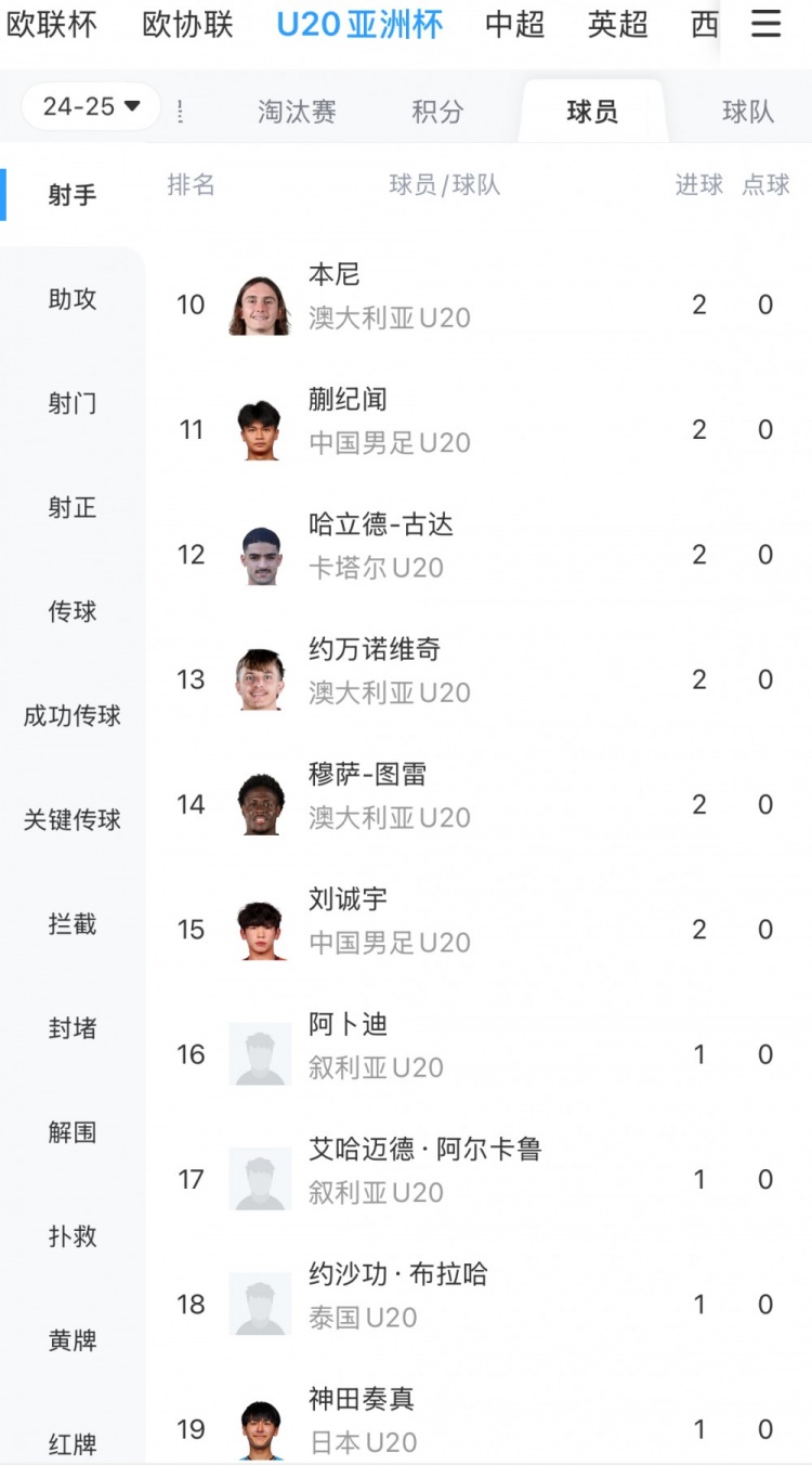 而在射手榜中,國青3將躋身射手榜前10,分別是朱鵬宇、蒯紀(jì)聞和劉誠宇,3人均在本屆賽事打進(jìn)2球,并列排在射手榜第4位。