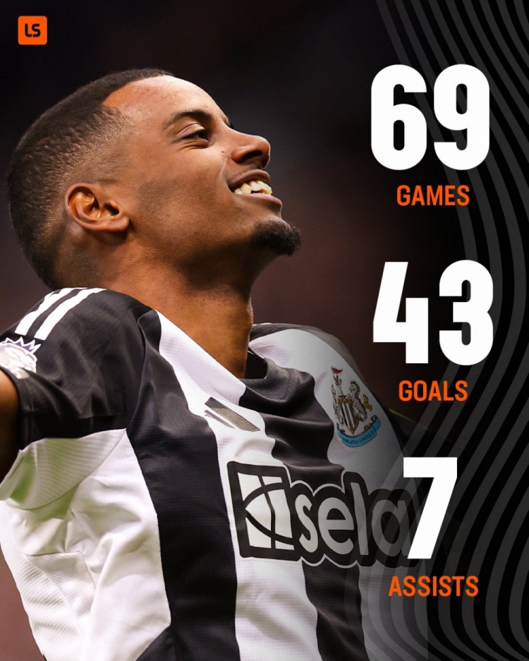 根據(jù)統(tǒng)計(jì),伊薩克英超生涯至今踢了69場(chǎng)比賽,已經(jīng)貢獻(xiàn)了43粒進(jìn)球和7次助攻,制造了50粒進(jìn)球。