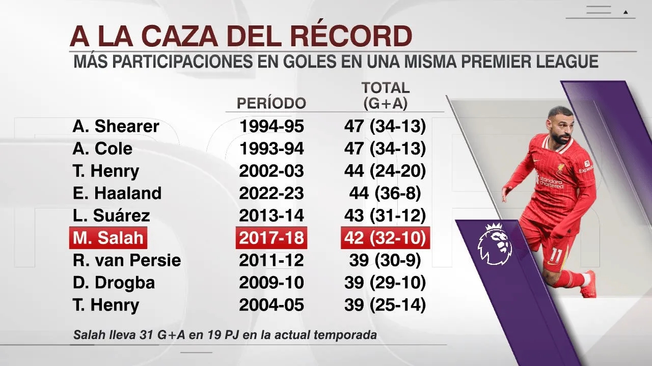 薩拉赫本場(chǎng)打進(jìn)1球,本賽季英超19場(chǎng),已經(jīng)參與制造了31粒進(jìn)球。