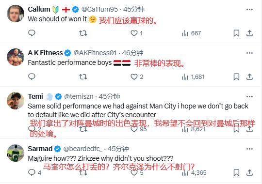 英超第20輪雙紅會,曼聯(lián)客場2-2戰(zhàn)平利物浦。曼聯(lián)球迷對球隊本場表現(xiàn)感到滿意,對未能取勝感到可惜。