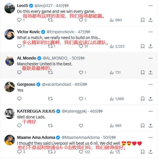 除特別注明外,本站所有內容均為九球直播整理排版,轉載請注明出處:不滿平局!曼聯(lián)球迷熱議:精彩&為球隊自豪,不是說利物浦會6-0嗎