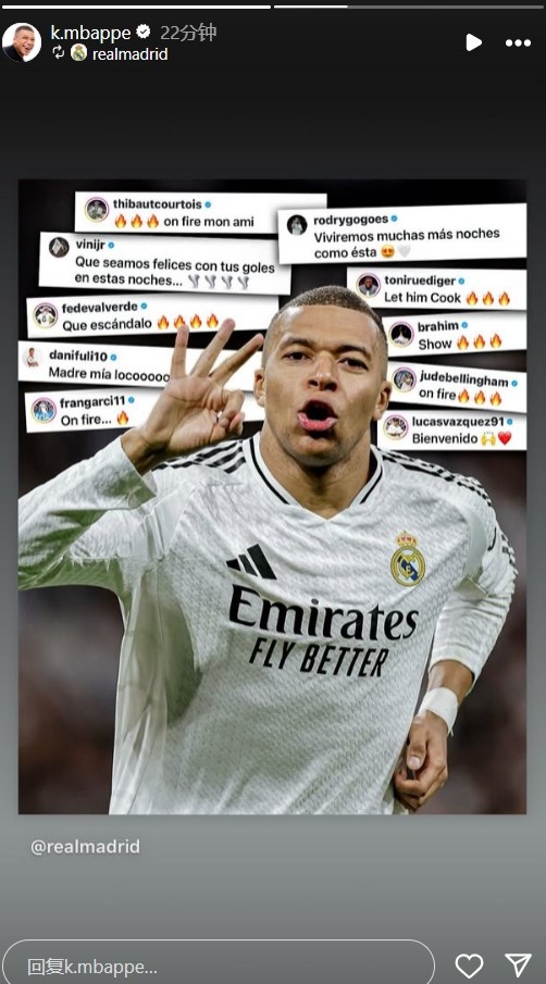 發(fā)布時(shí)間:2025年02月21日 23:50點(diǎn)擊:欄目:足球新聞 2月21日訊 姆巴佩更新了社媒動(dòng)態(tài),曬出了周中帽子戲法后隊(duì)友稱贊自己的社媒評論。姆巴佩在對陣曼城的比賽中上演帽子戲法,幫助皇馬淘汰對手晉級歐冠16強(qiáng)。在賽后姆巴佩更新了社媒動(dòng)態(tài),維尼修斯、庫爾圖瓦、羅德里戈、呂迪格、巴爾韋德、貝林厄姆等隊(duì)友對姆巴佩的社媒進(jìn)行了評論稱贊。 除特別注明外,本站所有內(nèi)容均為九球直播整理排版,轉(zhuǎn)載請注明出處:團(tuán)結(jié)一致!姆巴佩曬出帽子戲法后隊(duì)友稱贊自己的社媒評論 本文標(biāo)簽: 足球 姆巴佩 西甲 皇家馬德里