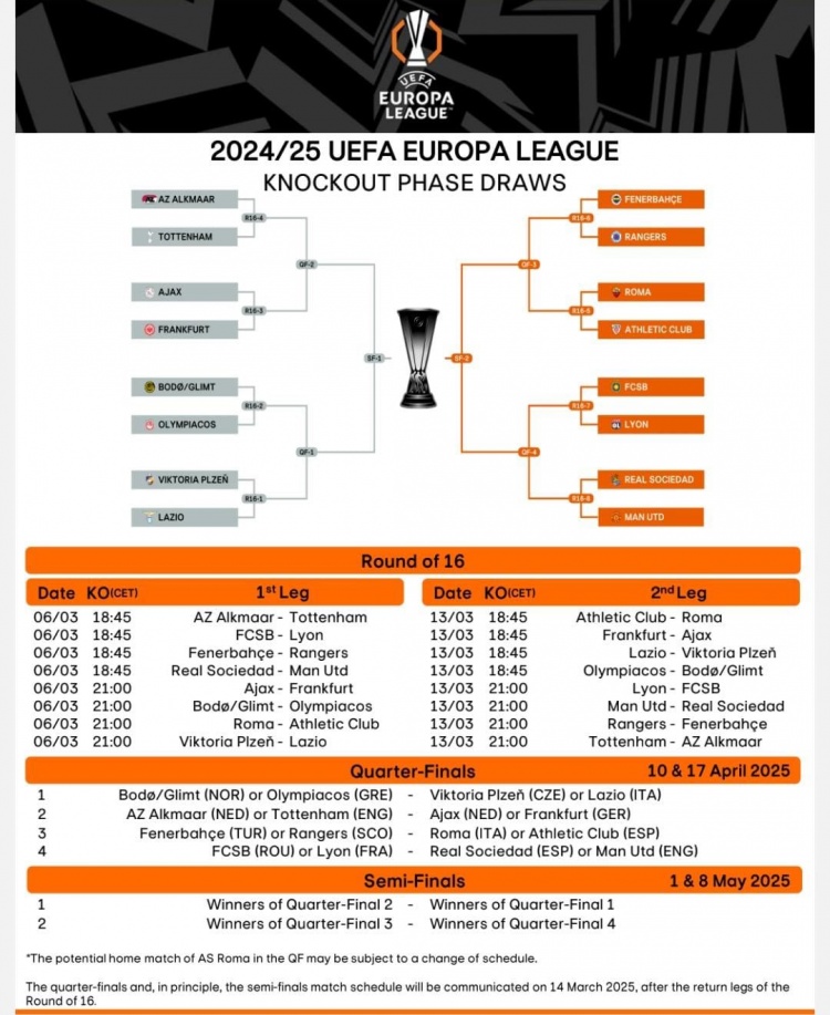 除特別注明外,本站所有內(nèi)容均為九球直播整理排版,轉(zhuǎn)載請(qǐng)注明出處:歐聯(lián)16強(qiáng)戰(zhàn)首回合賽程:3月7日1:45皇社vs曼聯(lián),4點(diǎn)羅馬vs畢巴