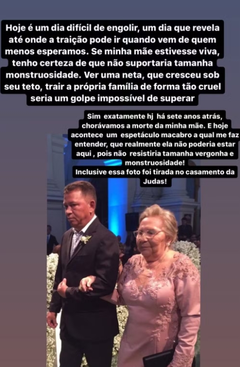 整整七年前,我們正在哀悼我母親的去世。而今天,一個可怕的場面正在上演,這讓我意識到,我母親真的不可能在這里,因?yàn)樗裏o法抗拒這樣的恥辱!這張照片甚至是在猶大的婚禮上拍攝的!