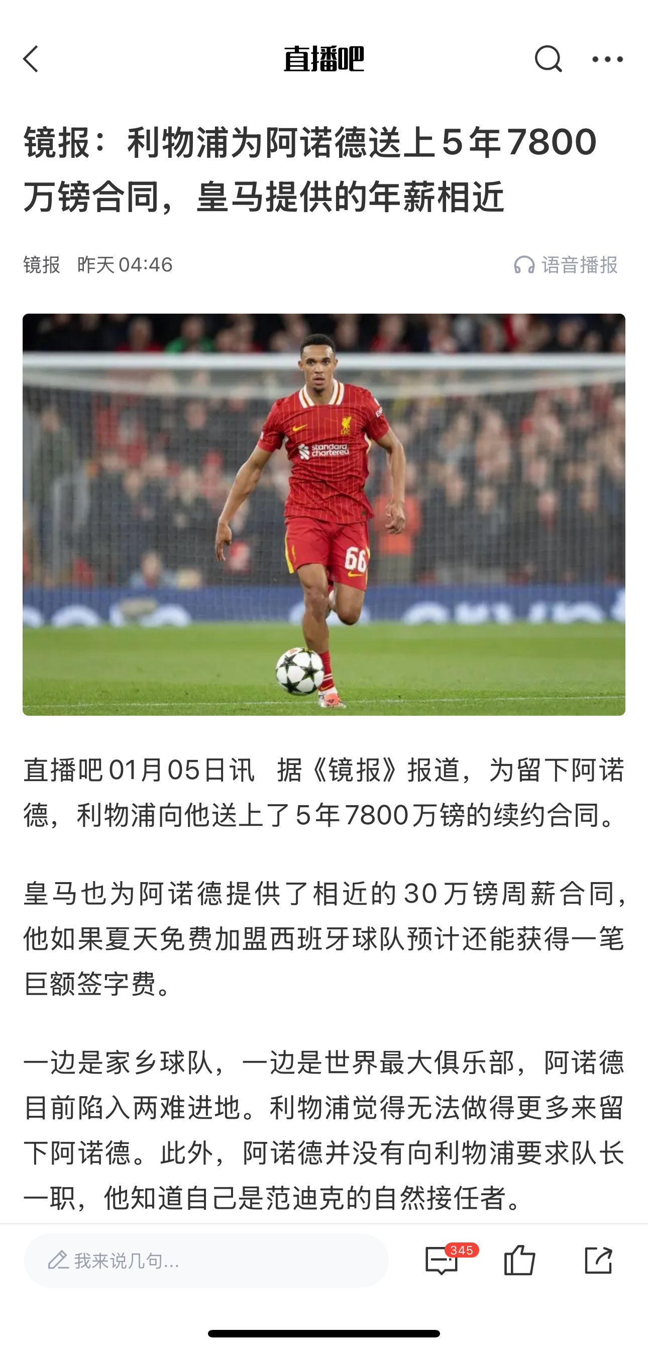 發(fā)布時(shí)間:2025年01月06日 09:50點(diǎn)擊:欄目:足球新聞 除特別注明外,本站所有內(nèi)容均為九球直播整理排版,轉(zhuǎn)載請(qǐng)注明出處:阿諾德雙紅會(huì)災(zāi)難發(fā)揮,昨日曝利物浦給他5年7800萬鎊大合同 本文標(biāo)簽: 足球 英超 利物浦
