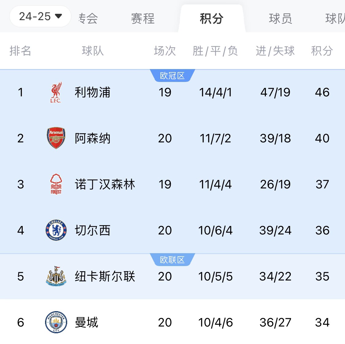 英超第20輪,利物浦、切爾西、阿森納全部平局,曼城4-1西漢姆取得兩連勝。