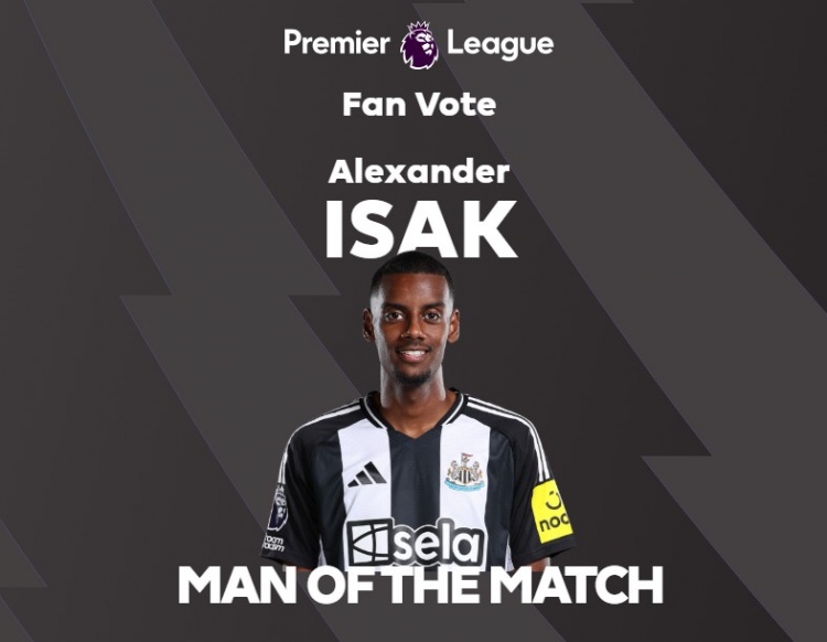 本場比賽紐卡前鋒伊薩克上半場兩分鐘連入兩球,賽后他也當選英超官方球迷票選全場最佳球員。