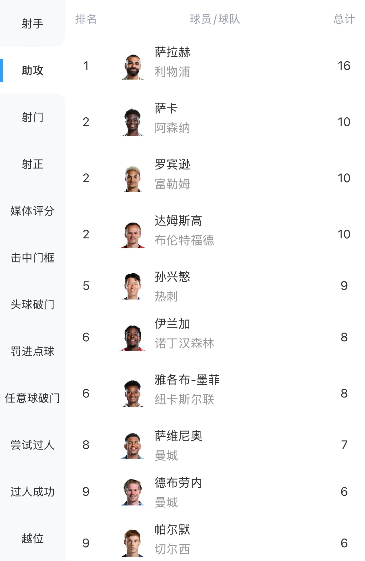 發(fā)布時間:2025年02月24日 03:50點擊:欄目:足球新聞 02月24日訊 英超第26輪焦點戰(zhàn),利物浦2-0客勝曼城,薩拉赫傳射建功。薩拉赫目前以25球領跑射手榜,領先哈蘭德和伊薩克6球。助攻榜上,薩拉赫16助領跑,領先薩卡等人6個。本賽季至今,薩拉赫各賽事打進30球助攻21個。英超射手榜:英超助攻榜: 除特別注明外,本站所有內容均為九球直播整理排版,轉載請注明出處:這不趕快續(xù)約?薩拉赫領跑射手榜、助攻榜,賽季已30球21助 本文標簽: 足球 英超 曼城 薩拉赫