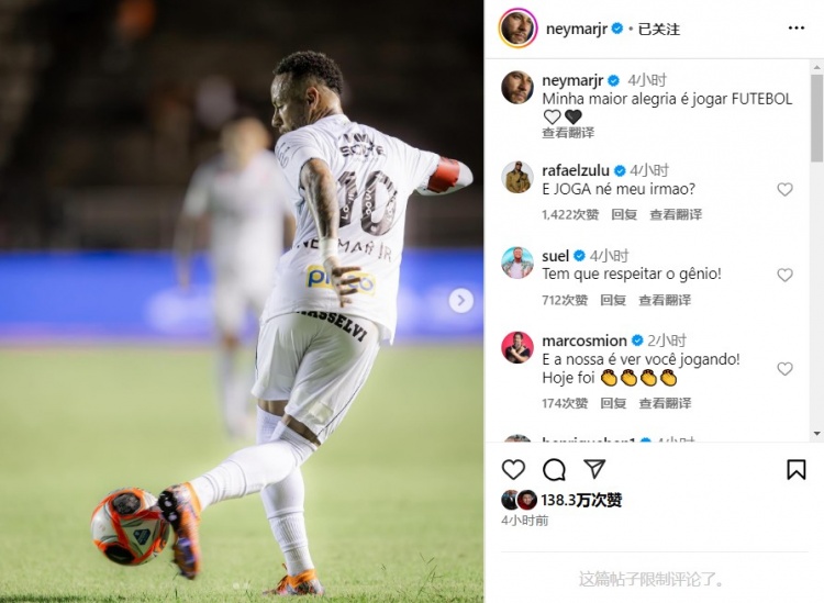 發(fā)布時間:2025年02月24日 14:50點擊:欄目:足球新聞 2月24日訊 巴西圣保羅聯賽,桑托斯3-0國際里梅拉。內馬爾本場1射2傳,其中角球直接破門。賽后,內馬爾在社交媒體發(fā)文慶祝勝利。內馬爾寫道:“踢足球是我最大的快樂 除特別注明外,本站所有內容均為九球直播整理排版,轉載請注明出處:1射2傳定勝局,內馬爾社媒發(fā)文:踢足球是我最大的快樂 本文標簽: 足球 內馬爾 五洲 巴甲