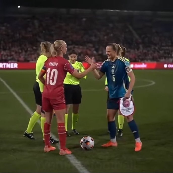 丹麥女足隊(duì)長佩妮萊-哈德爾和瑞典女足隊(duì)長馬達(dá)萊娜-埃里克松都效力于拜仁女足,她們是一對(duì)情侶,已經(jīng)訂婚,最近兩支國家隊(duì)在歐國聯(lián)碰面,兩人作為隊(duì)長在賽場上碰面。