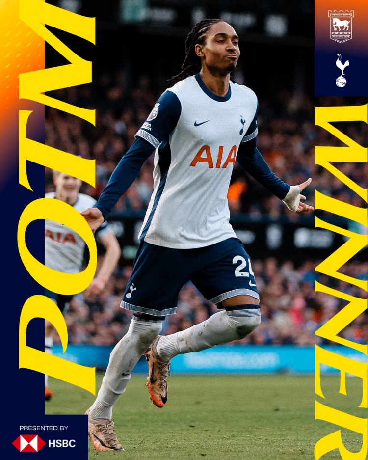 2月24日訊 英超第26輪比賽中,熱刺客場4-1擊敗伊普斯維奇。賽后,熱刺官方宣布,斯賓塞當選隊內最佳球員。