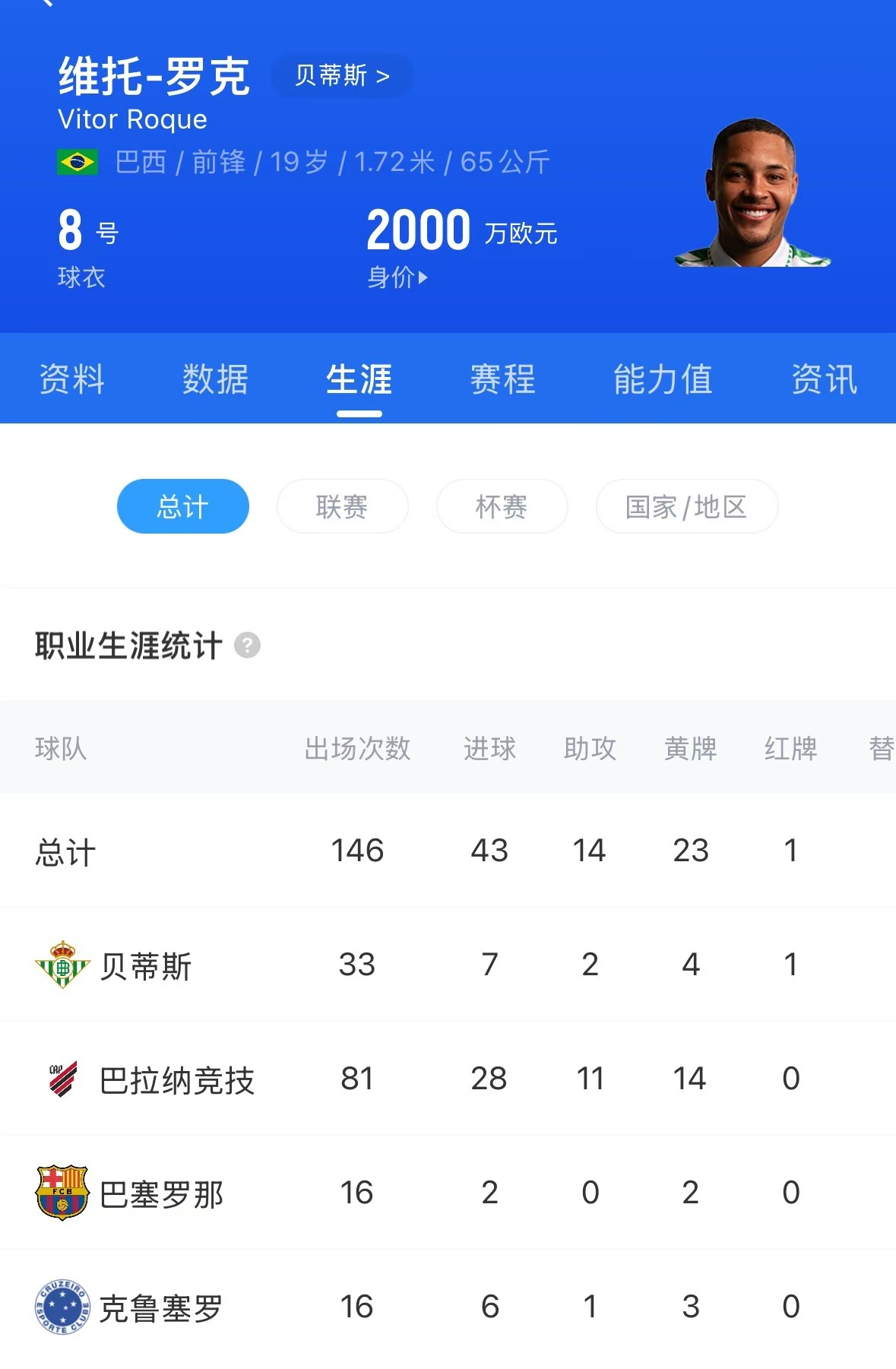 羅克在這個(gè)賽季也被租借到皇家貝蒂斯,而他本月在6場(chǎng)比賽中僅有1次首發(fā),還吃到紅牌被罰出場(chǎng)。目前球員德轉(zhuǎn)身價(jià)為2000萬歐元。