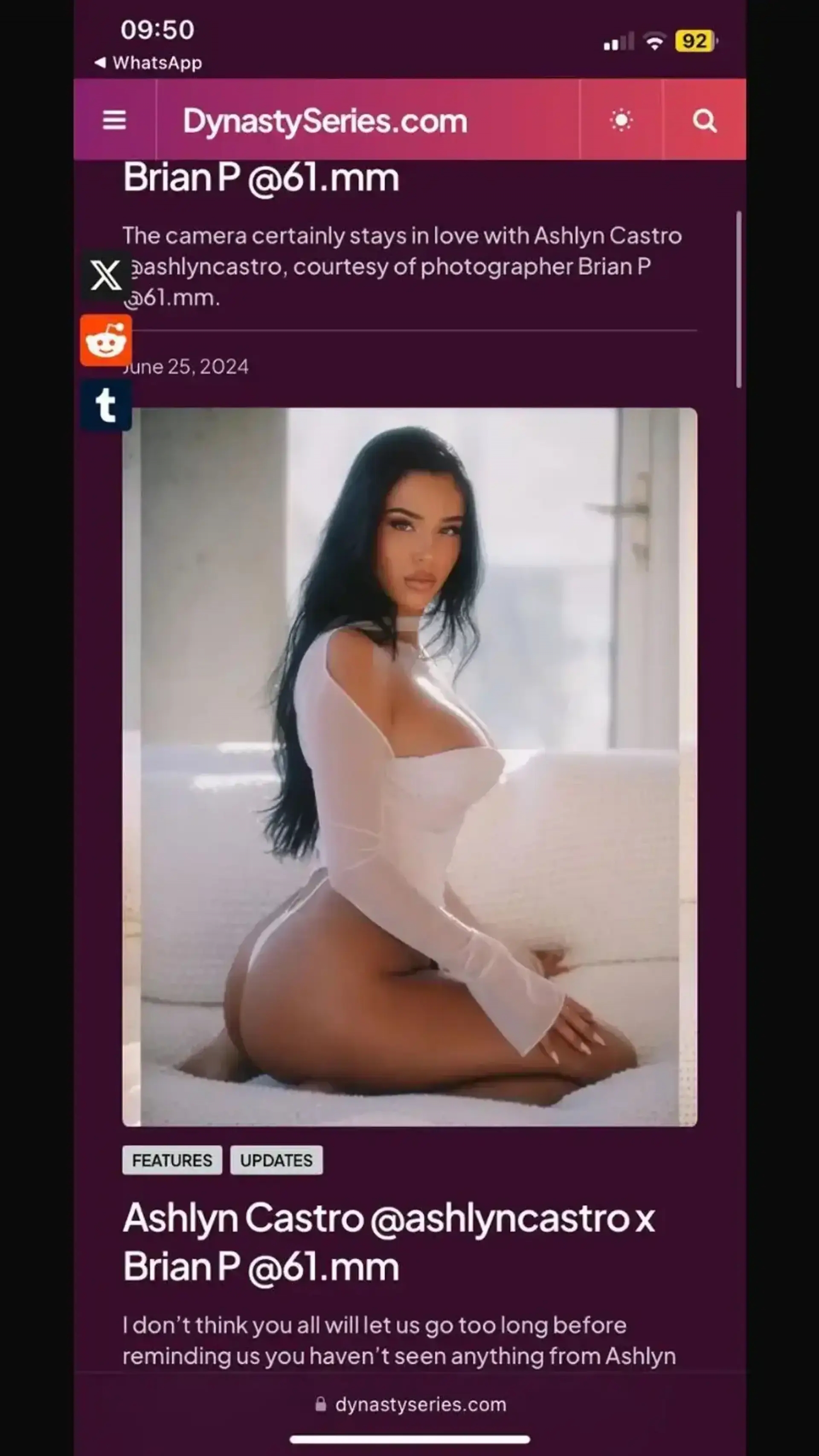 02月26日訊 tribuna等一些小道媒體傳聞消息,網(wǎng)友找到了Ashlyn Castro在一家高端應(yīng)召女網(wǎng)站的頁面,截圖顯示的時間是2024年6月。