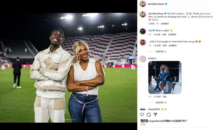 邁阿密本賽季美職聯(lián)已經(jīng)踢了第一輪比賽,邁阿密國際2-2紐約城,本場比賽博格巴和小威來到了現(xiàn)場觀賽,貝克漢姆賽后更新社媒,也曬出了博格巴的圖片。