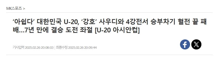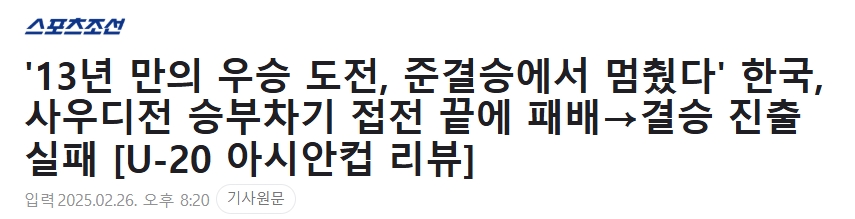 “13年來(lái)的冠軍爭(zhēng)奪止步半決賽”韓國(guó)點(diǎn)球大戰(zhàn)惜敗沙特→無(wú)緣決賽