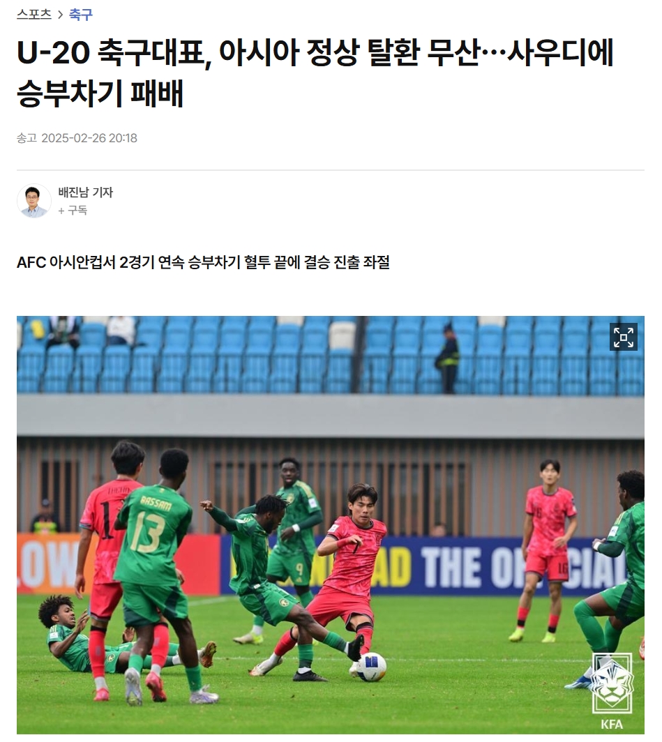 韓國(guó)U-20未能重奪亞洲霸主地位……點(diǎn)球大戰(zhàn)負(fù)于沙特阿拉伯