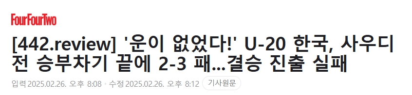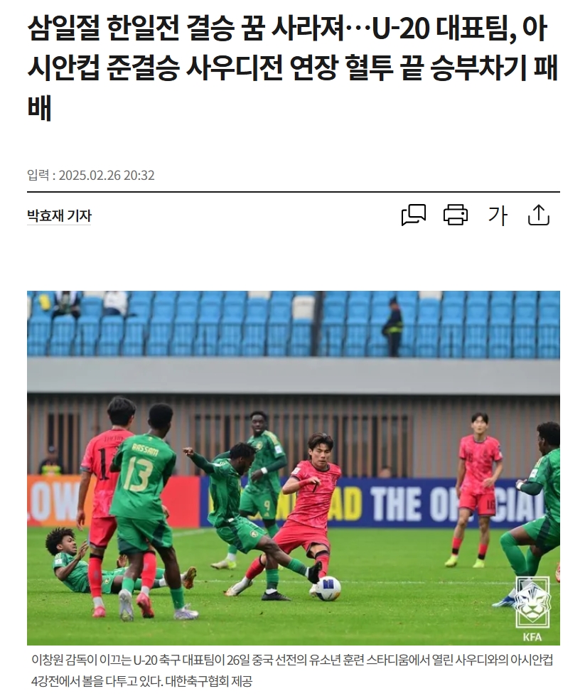 3月1日韓日決賽的夢(mèng)想已經(jīng)破滅……亞洲杯半決賽中,韓國(guó)U20在點(diǎn)球大戰(zhàn)中輸給沙特阿拉伯隊(duì)