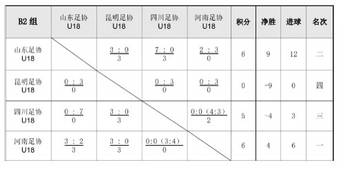 小組賽最后一輪,由于對手昆明足協(xié)U18隊棄權,河南隊憑借對陣山東的勝負關系優(yōu)勢,力壓對手以小組頭名的成績進入到了接下來的排位賽。