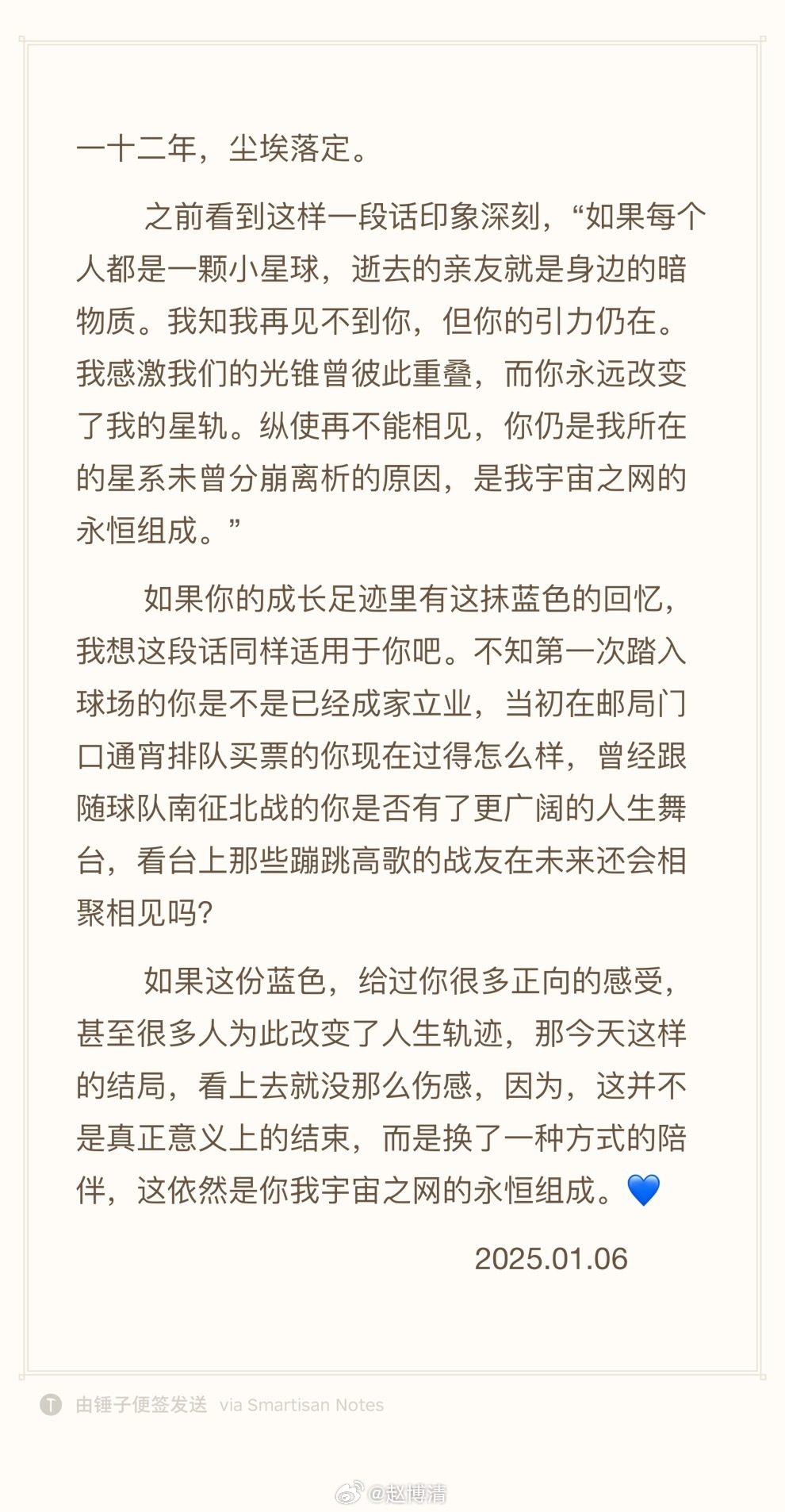 1月6日訊 滄州雄獅新聞官趙博清更新微博,發(fā)長(zhǎng)文告別俱樂部。