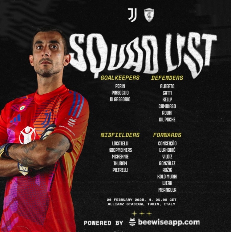 2月26日訊 北京時間2月27日凌晨4:00,意大利杯1/4決賽,尤文圖斯將坐鎮(zhèn)主場迎戰(zhàn)恩波利。賽前,尤文官方公布本場比賽大名單,弗拉霍維奇領(lǐng)銜鋒線,庫普梅納斯在列。