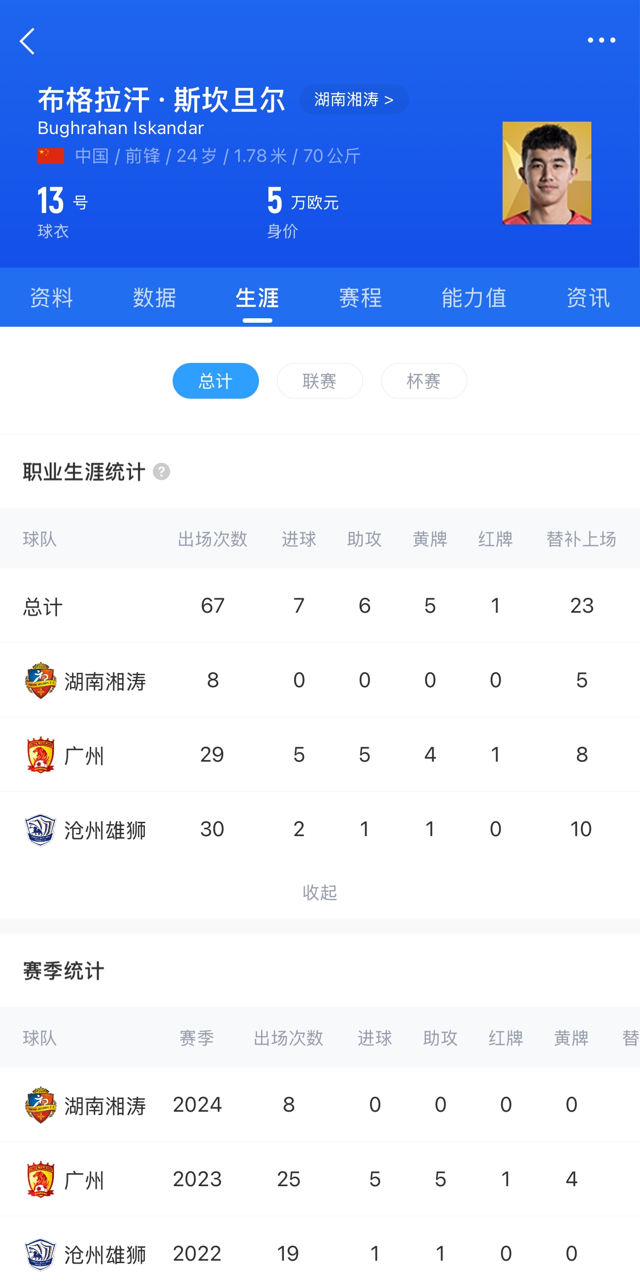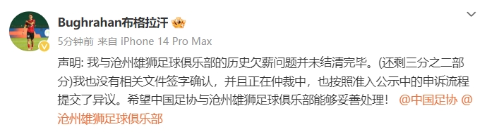 發(fā)布時間:2025年01月06日 17:50點擊:欄目:足球新聞 布格拉汗現(xiàn)年24歲,布格拉汗2019年被上調(diào)至廣州一線隊,2021年加盟滄州雄獅,2023年離開滄州雄獅重返廣州隊,2024年加盟成都蓉城,租借至湖南湘濤半年。滄州雄獅已經(jīng)官宣退出職業(yè)聯(lián)賽,解散;湖南湘濤,也已經(jīng)宣布退出職業(yè)聯(lián)賽;廣州隊未獲得準入,大概率解散。 除特別注明外,本站所有內(nèi)容均為九球直播整理排版,轉(zhuǎn)載請注明出處:廣州、滄州、湘濤布格拉汗生涯出場三個俱樂部今日全部解散? 本文標簽: 足球 中超 中國足球 中甲 廣州 滄州雄獅 中乙 話題