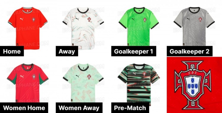 葡萄牙是彪馬的頂級合作伙伴,所以他們就獲得最新的球衣模版,另外還有其他許多配套服飾,例如賽前球衣、訓練球衣等。