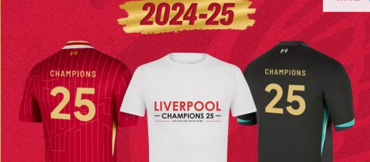 這款t恤成人版售價(jià)9.99英鎊,青少年版售價(jià)7.99英鎊,現(xiàn)在已經(jīng)可以購(gòu)買了。利物浦球迷還可以訂購(gòu)印有“25”字樣的球衣復(fù)制品。它的背面有冠軍和25字樣,而俱樂(lè)部的logo周圍也繡著“冠軍 25”字樣。