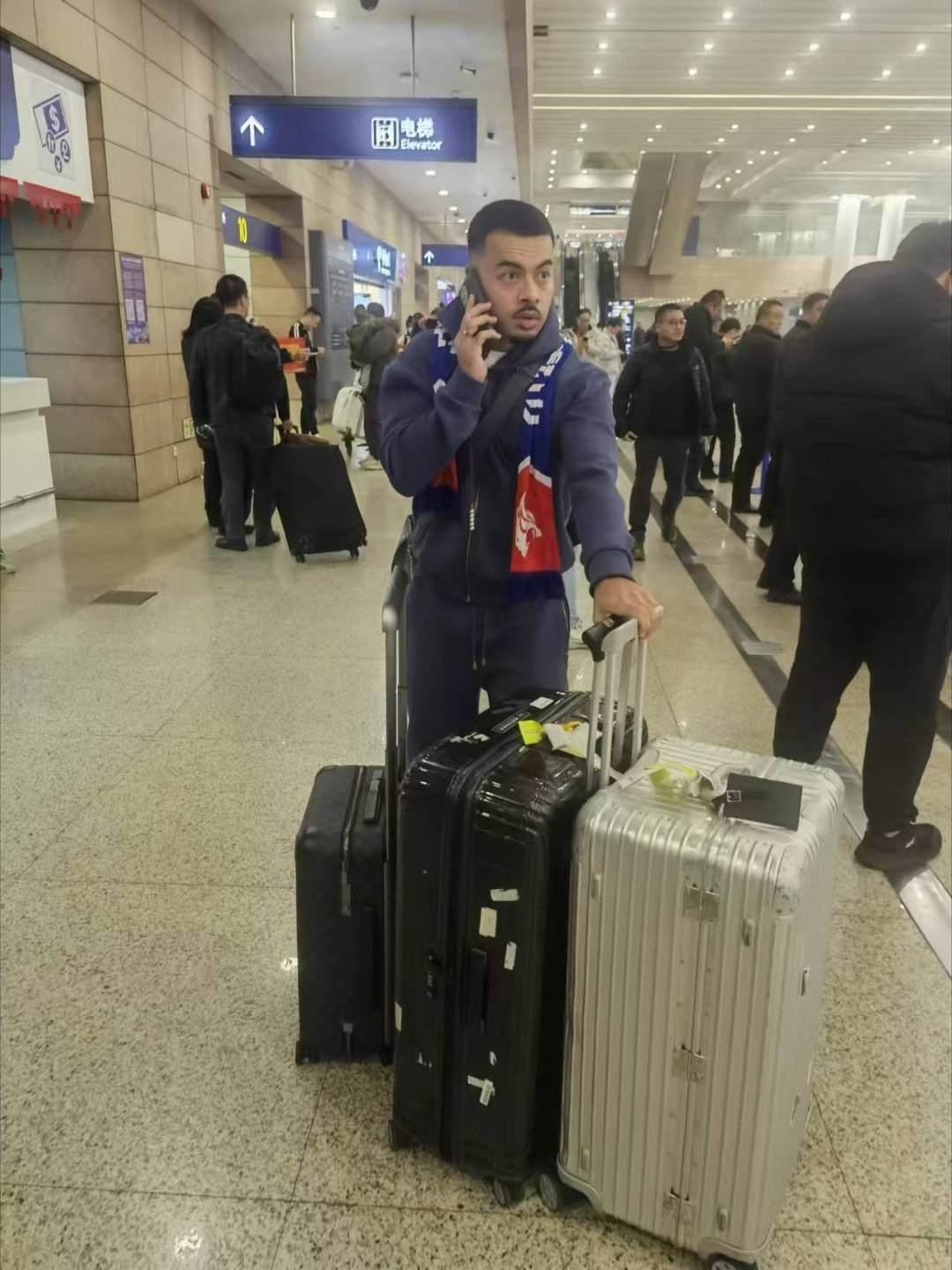 根據(jù)今日網(wǎng)絡(luò)上流傳的李可照片,球員手托數(shù)個(gè)行李箱在機(jī)場打電話,并戴上了上海申花圍巾。