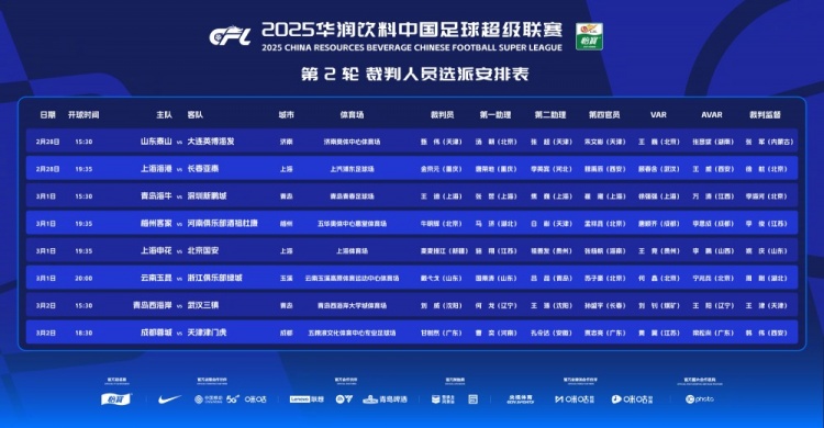 除特別注明外,本站所有內(nèi)容均為九球直播整理排版,轉(zhuǎn)載請注明出處:中超第2輪裁判安排:麥麥提江吹罰申花vs國安,VAR王競