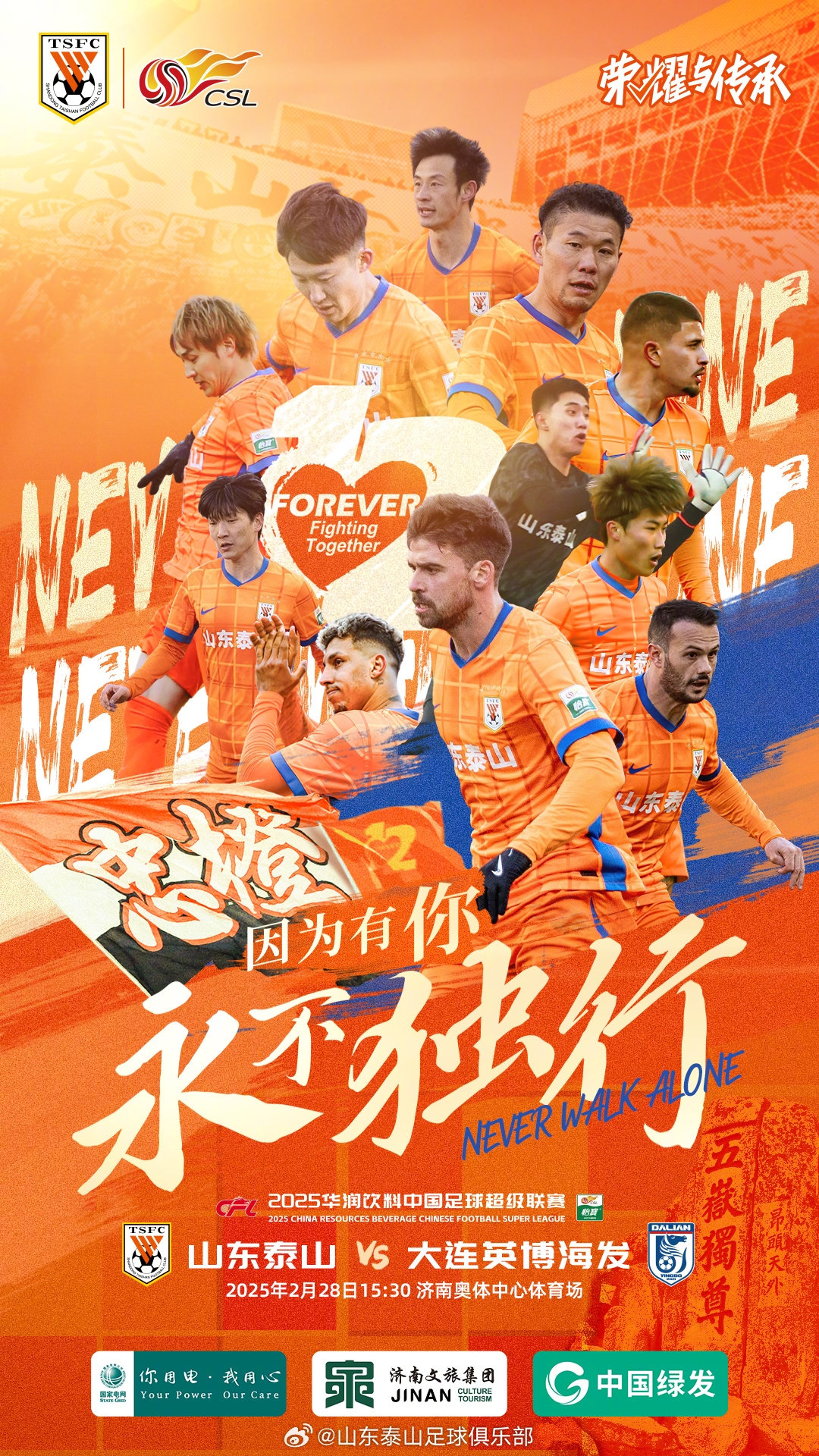 山東泰山首發(fā):1-于金永、4-卡扎爾(F)、5-鄭錚、11-劉洋、17-吳興涵、22-李源一、25-彭欣力、35-黃政宇、9-克雷桑(F)、10-卡扎伊什維利(F)、19-澤卡(F)
