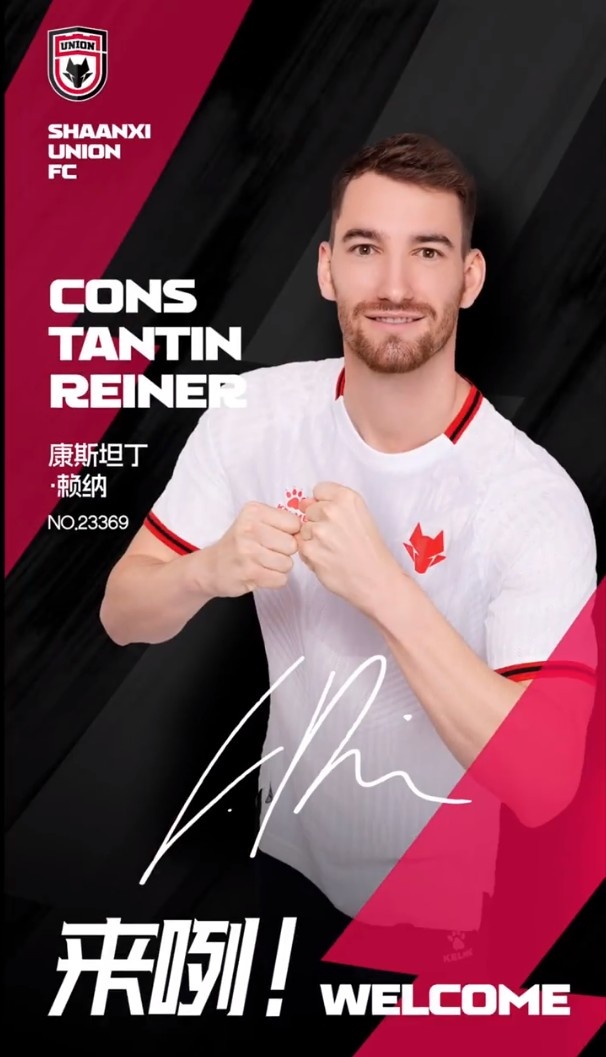 經(jīng)與球員本人友好協(xié)商并達成一致,球員康斯坦丁·賴納(Constantin Reiner)會員號:23369,正式加盟陜西聯(lián)合足球俱樂部!