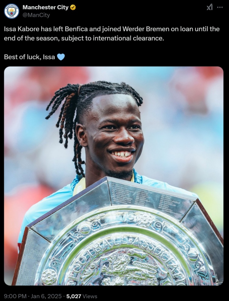 發(fā)布時間:2025年01月06日 21:51點擊:欄目:足球新聞 1月6日訊 曼城官方宣布,23歲后衛(wèi)卡博雷提前結束在本菲卡的租期。他將租借加盟不萊梅,租期至本賽季結束。在獲得相關批準后,卡博雷就將正式租借加盟不萊梅。卡博雷主要司職右后衛(wèi),也可以客串中衛(wèi)和右中場,來自布基納法索。本賽季他被外租至本菲卡效力,但出場機會寥寥。至今共代表本菲卡出場7次,出場時間193分鐘,送出1次助攻。2020年,曼城花費450萬歐簽下了卡博雷。 除特別注明外,本站所有內容均為九球直播整理排版,轉載請注明出處:曼城官方:23歲后衛(wèi)卡博雷提前結束本菲卡租期,將租借加盟不萊梅 本文標簽: 足球 英超 曼城 不萊梅 葡超
