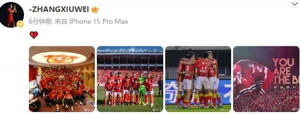 前廣州隊球員張修維今天在社媒分享昔日代表廣州隊踢球的照片,告別廣州隊。