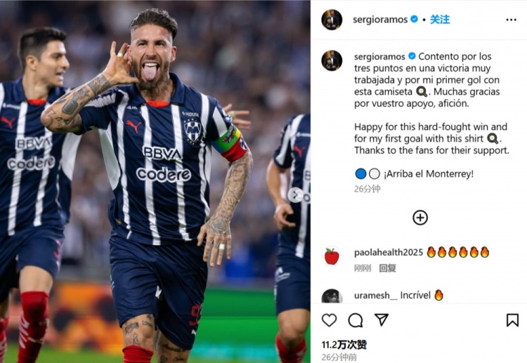 3月3日訊 拉莫斯更新社媒,慶祝自己打進(jìn)加盟蒙特雷后的首粒進(jìn)球。