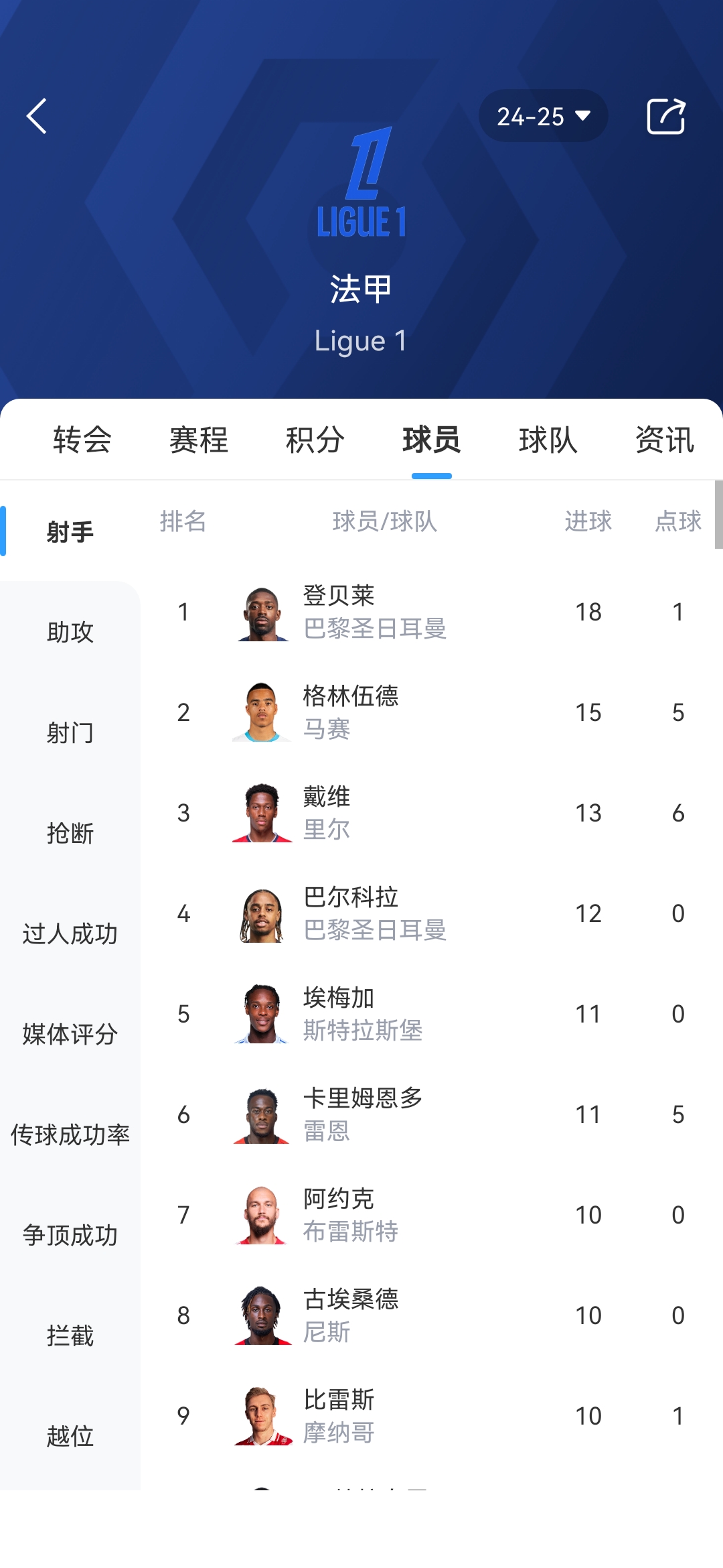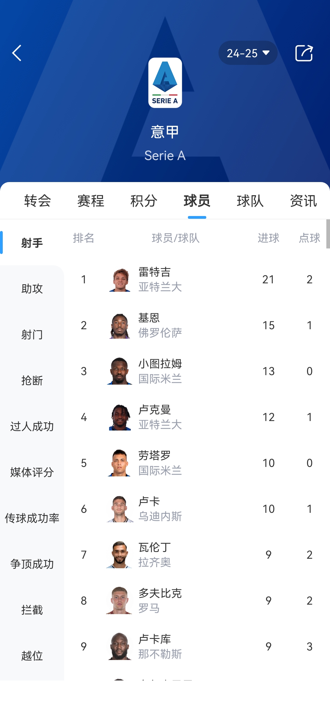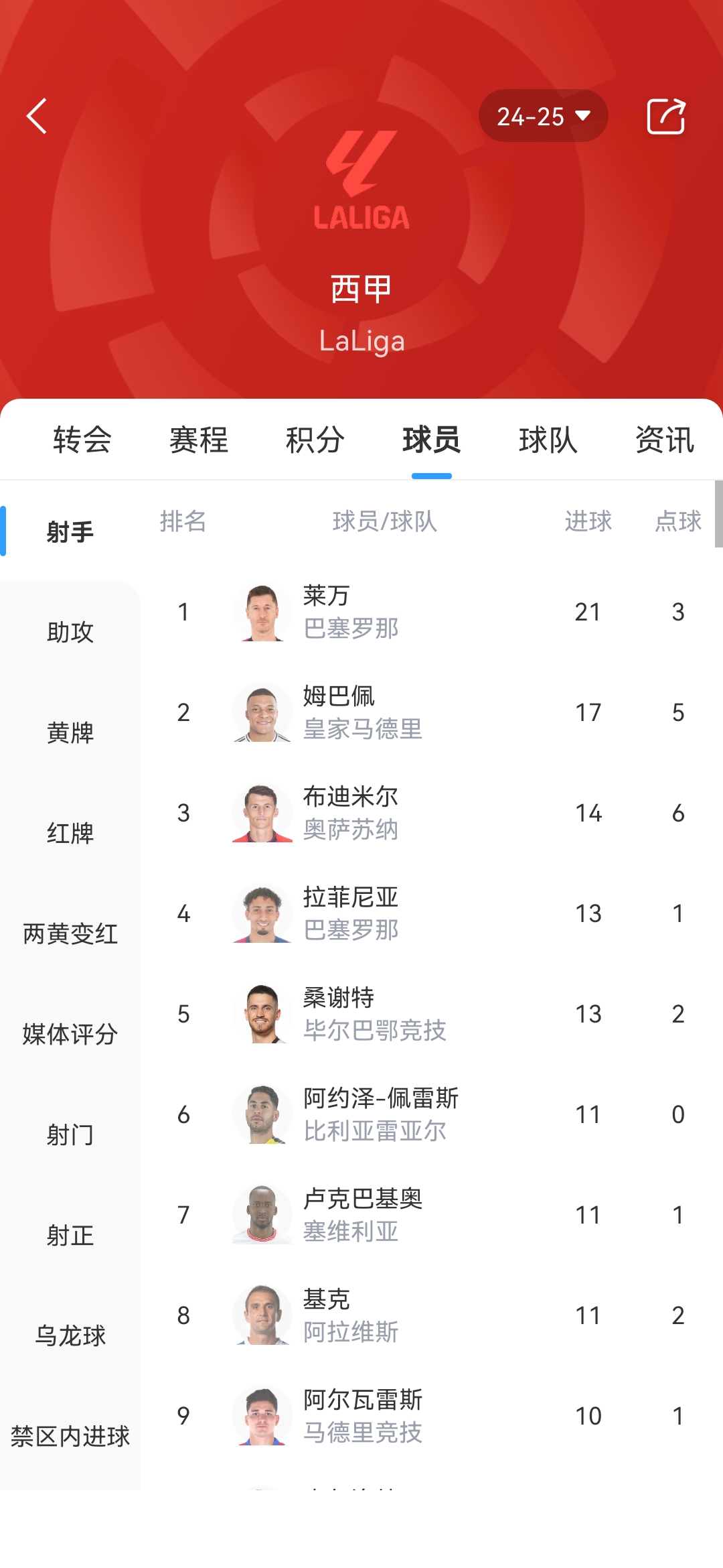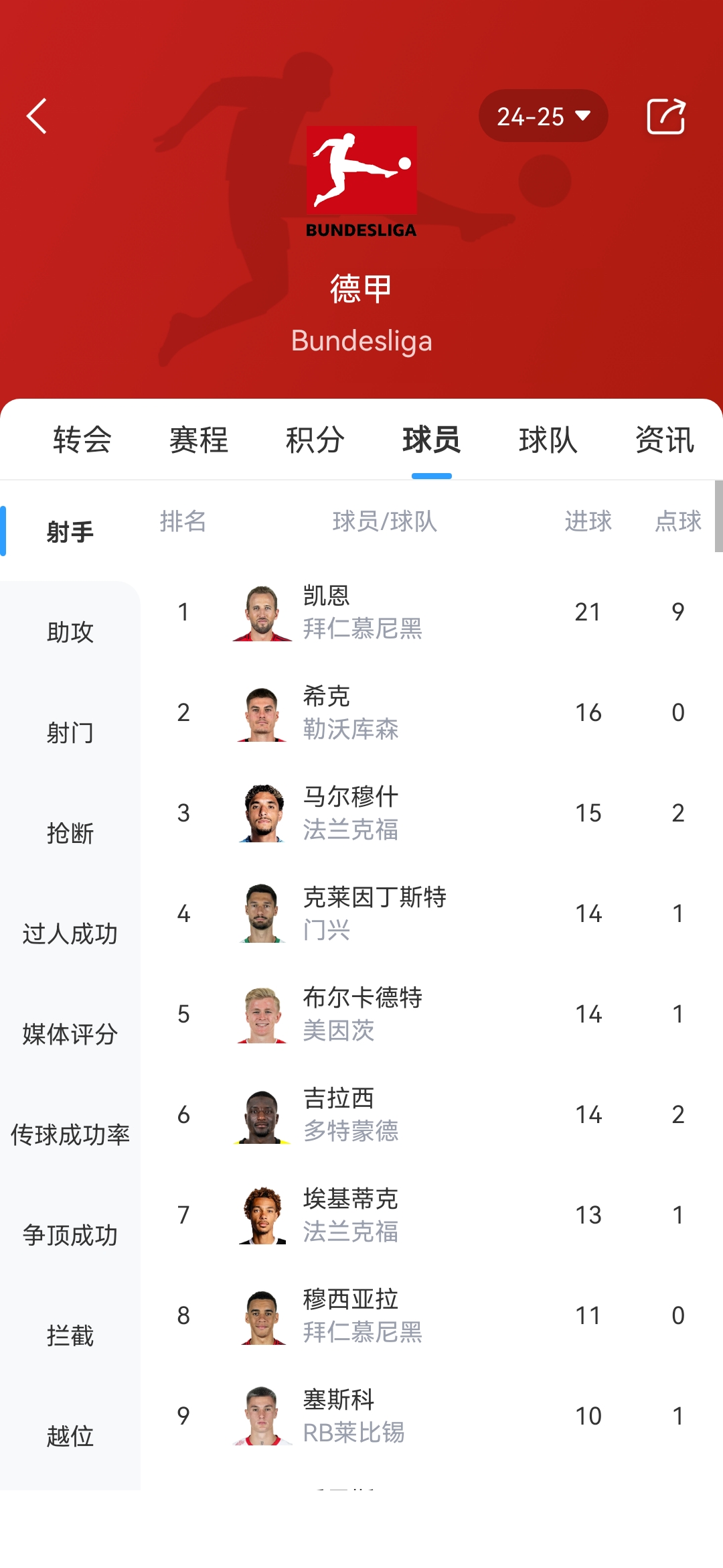 發(fā)布時間:2025年03月03日 19:50點擊:欄目:足球新聞 03月03日訊 五大聯(lián)賽進入后半段,除了積分榜上的競爭,各位射手在射手榜上也是你追我趕。目前領(lǐng)跑歐洲金靴的是薩拉赫,他在英超打進了25球,在他身后雷特吉、萊萬和凱恩都打進了21球,哈蘭德20球。英超射手榜:意甲射手榜:西甲射手榜:德甲射手榜:法甲射手榜: 除特別注明外,本站所有內(nèi)容均為九球直播整理排版,轉(zhuǎn)載請注明出處:曇花億現(xiàn)!歐洲金靴:薩拉赫25球領(lǐng)跑,雷特吉&萊萬&凱恩21球 本文標簽: 足球 英超 西甲 意甲 德甲 法甲 利物浦 巴塞羅那 亞特蘭大 拜仁慕尼黑 巴黎圣日耳曼