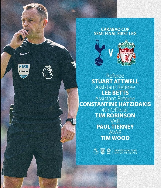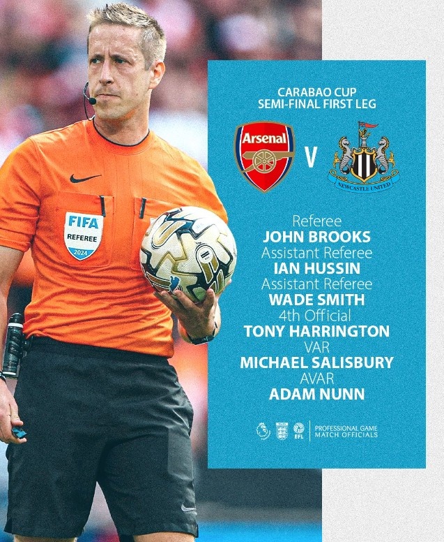 1月7日訊 聯(lián)賽杯首回合裁判安排出爐,其中約翰-布魯克斯將執(zhí)法阿森納VS紐卡,斯圖亞特-阿特維爾將執(zhí)法熱刺VS利物浦。