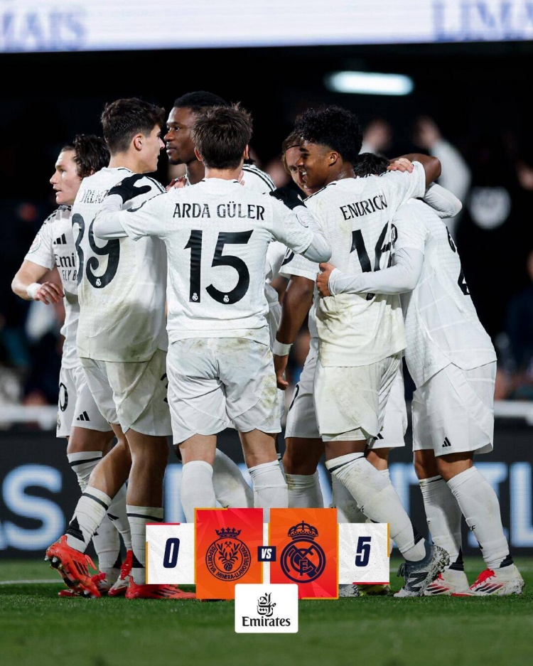 1月7日訊 國王杯第3輪,皇馬客場5-0戰(zhàn)勝米內(nèi)拉。